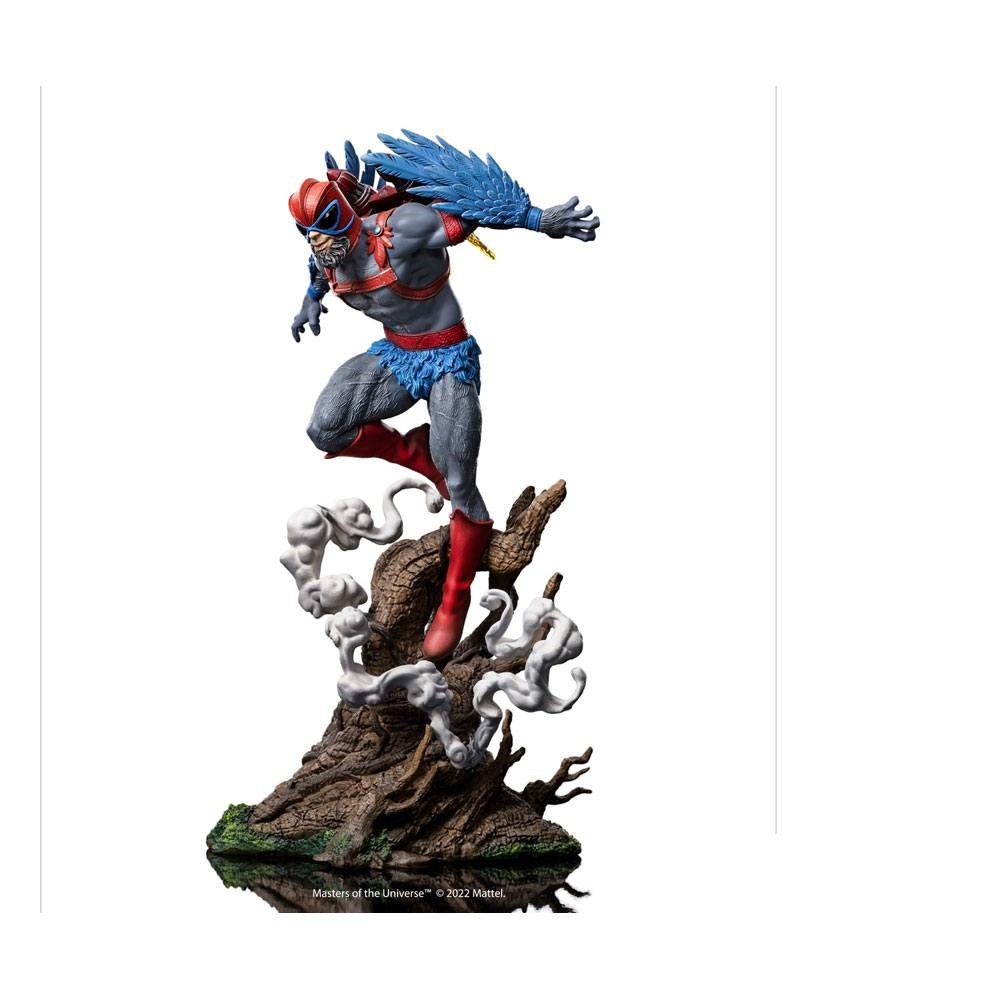 against the evil forces led by the wizard Skeletor, lord of Serpent Mountain, and his minions. With a jetpack on his back to increase his flight speed, and with his sharp eyes like a bird of prey, in addition to being a great fighter, he acts as a sneaky spy for the heroic warriors, defenders of the planet Eternia. Expanding their MOTU collection, Iron Studios presents the "Stratos BDS Art Scale 1/10 - Masters of the Universe - Art Scale 1/10" statue, featuring Avion's monarch and ally of He-Man.