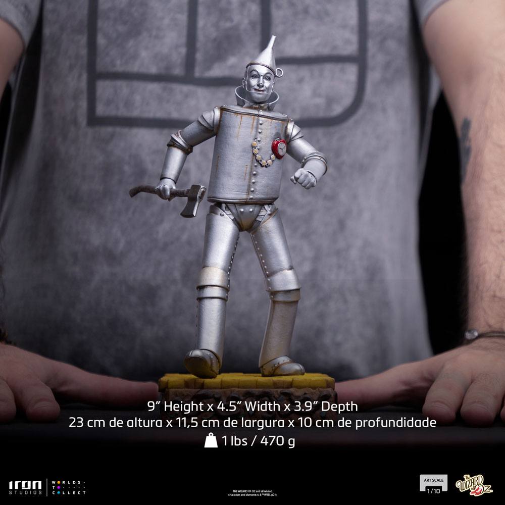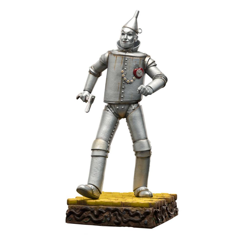I det fortryllede land Oz opdager en modig pige en mystisk metallisk figur på kanten af den gule murstensvej. Skjult af træer og buske, en mand helt lavet af tin og fuldstændig rusten mumler i smerte for sin oliedunk. Efter at have befriet ham fra sit rustfængsel og hjulpet ham tilbage til at bevæge sig og tale, fortæller han hende sin triste historie, at han følte sig tom indeni, fordi bliksmeden, der fik hans krop til at glemme at tilføje et hjerte. Han slutter sig derefter til den unge Dorothy i søgen efter den gådefulde troldmand, der kan hjælpe hende med at komme tilbage til sit hjem i Kansas og måske give et hjerte til sin nye ven. Iron Studios bringer statuen af klassikeren "Tin Man - The Wizard of Oz - Art Scale 1/10", spillet af Jack Haley, med uret tikker på venstre side af brystet, svingende med øksen og gå over en piedestal med den gule murstensvej, med tårnenes landskab fra Smaragdbyen i baggrunden.